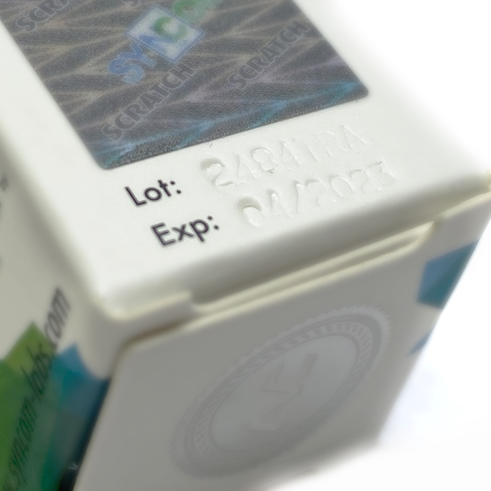 The Lot number and EXP date is punched instead of stamped