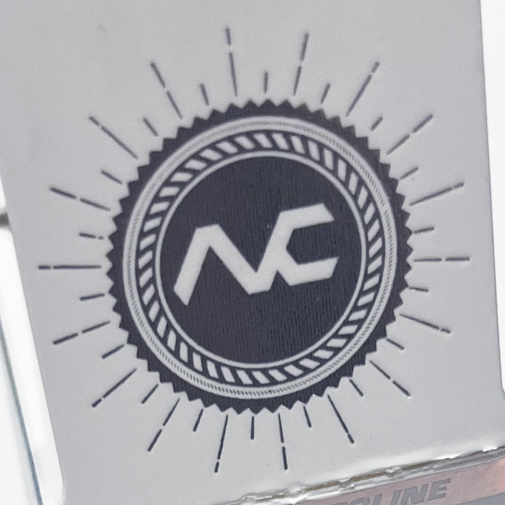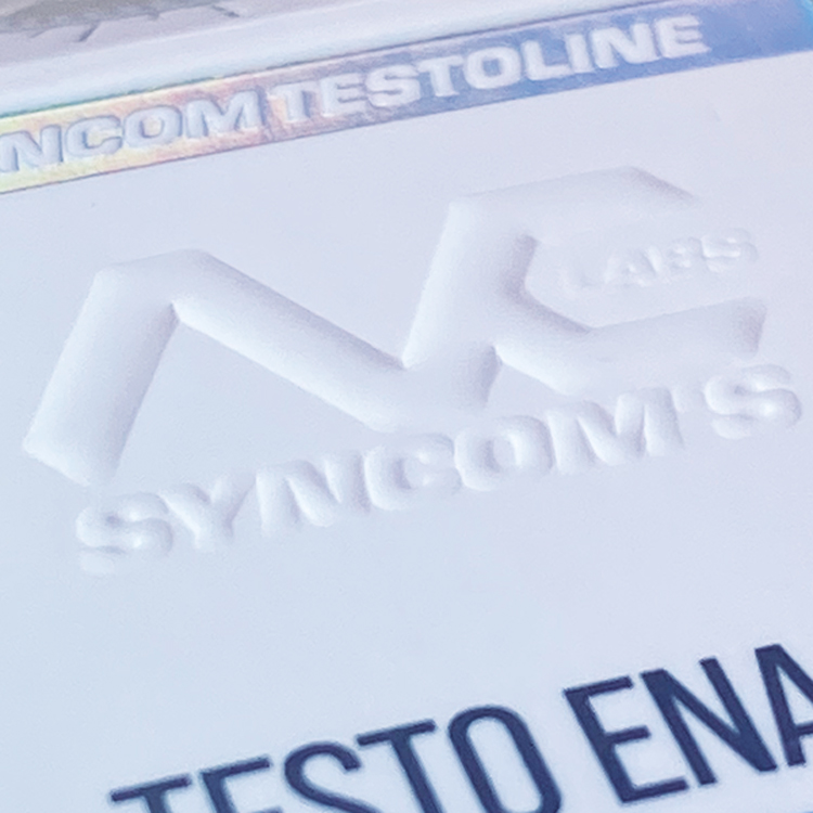 Embossed logo on the front and back of the packaging.