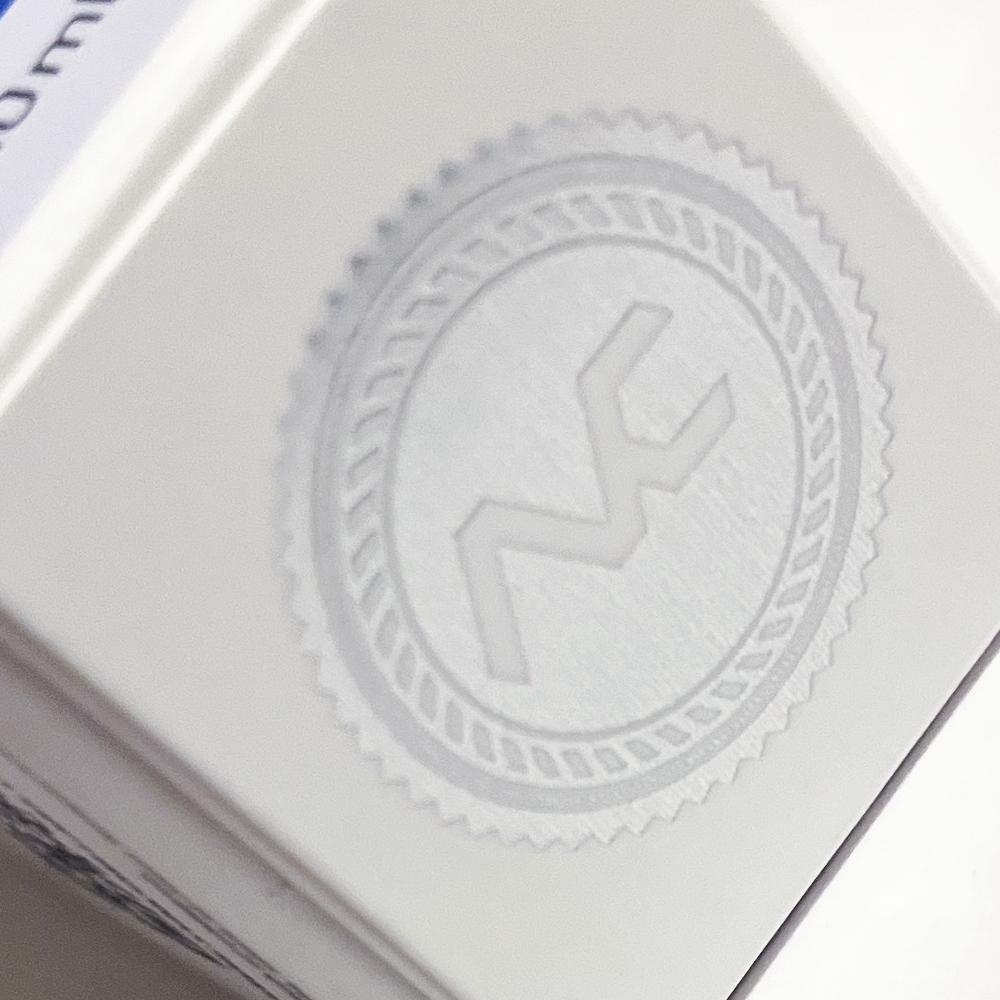 Logo on the top and bottom of the packaging is printed in silver foil.